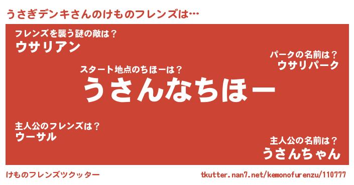 | 意味不明あだ名 | 『うさぎデンキフォーエバー』 |