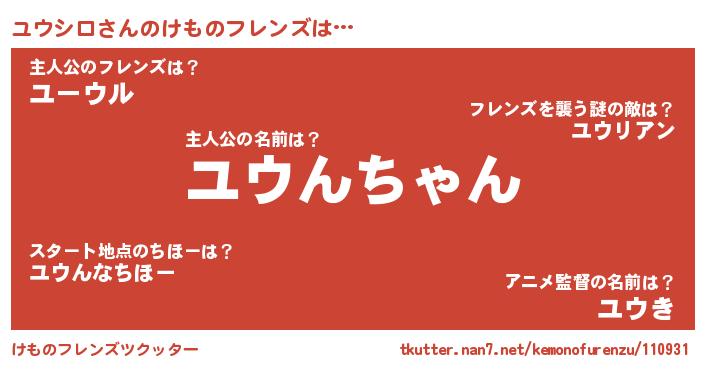 | ヘコむあだ名 | 『ユウっふぃ~』『ユウシロ(笑)』 |