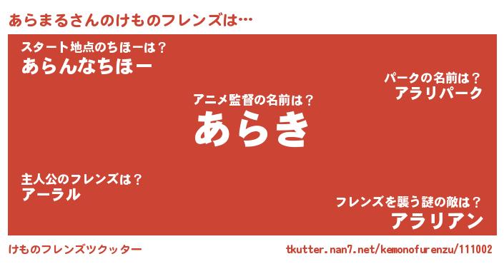 | ポケモン風あだ名 | 『アーライ』『ヒアラマル』 |