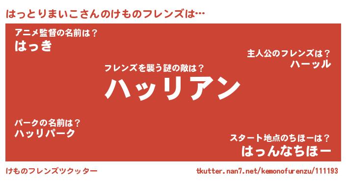 | 意味不明あだ名 | 『住所不定無職はっとりまいこ(5歳)』 |
