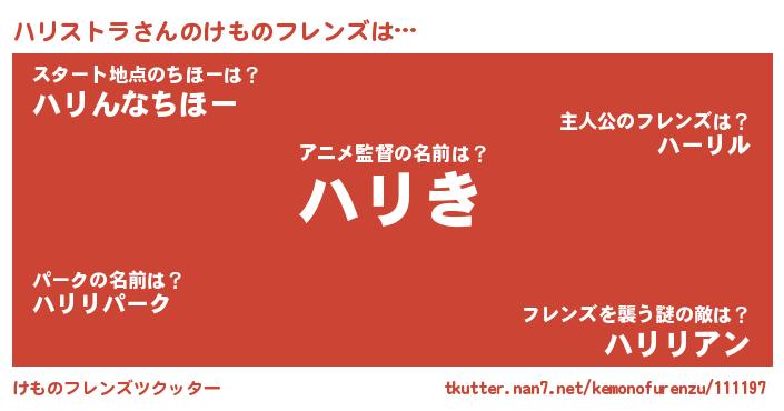 | ヘコむあだ名 | 『ハリを』『つくし』『ハリにゅー』 |