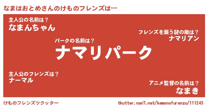 | 2回繰り返すあだ名 | 『もじゃもじゃ』『なまなま』 |