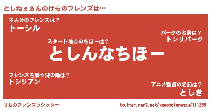 | ヘコむあだ名 | 『つくし』『としねぇ(小並感)』 |