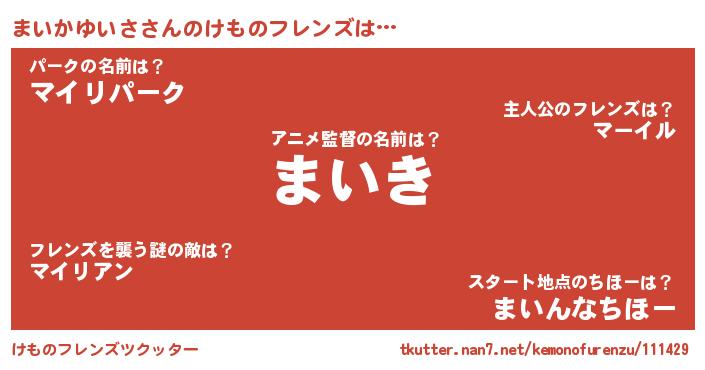 | 肩書あだ名 | 『まいかゆいさ団長』『まいかゆいさ総統』 |