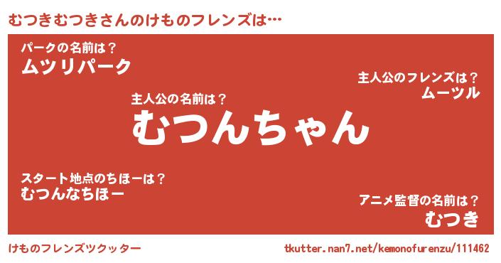| ヒーロー風カッコイイあだ名 | 『スーパームツキムツキ』『黄金騎士ムツ』 |