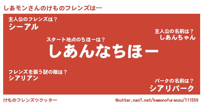 | 意味不明あだ名 | 『住所不定無職しあモン(56歳)』 |