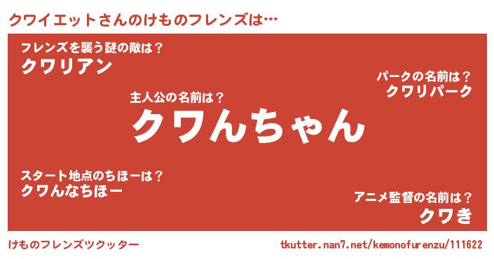 | ヒーロー風カッコイイあだ名 | 『スーパークワイエット』『天弓騎士クワ』 |