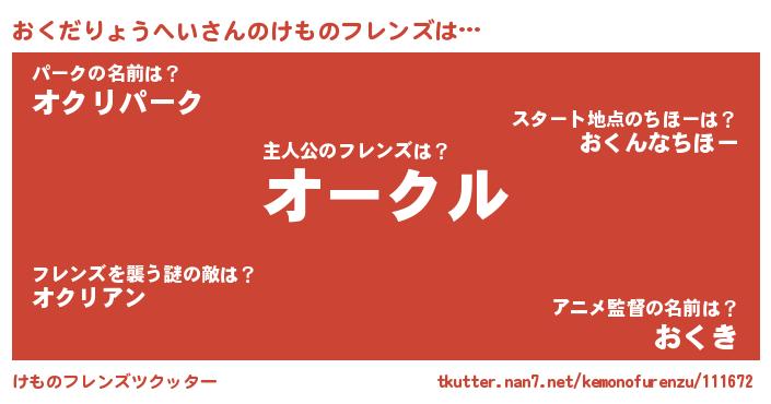 | 男性向けラノベタイトル風あだ名 | 『おくだりょうへいという概念が存在しない退屈な世界 』 |