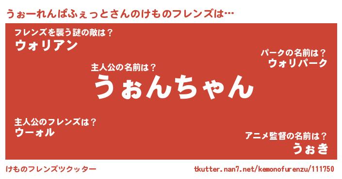 | 2回繰り返すあだ名 | 『うぉうぉ』『ずきずき』『ぺたぺた』 |