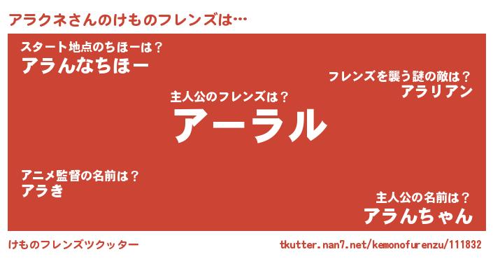 | 意味不明あだ名 | 『永久保存アラクネ』『ニラ科アラクネ属』 |