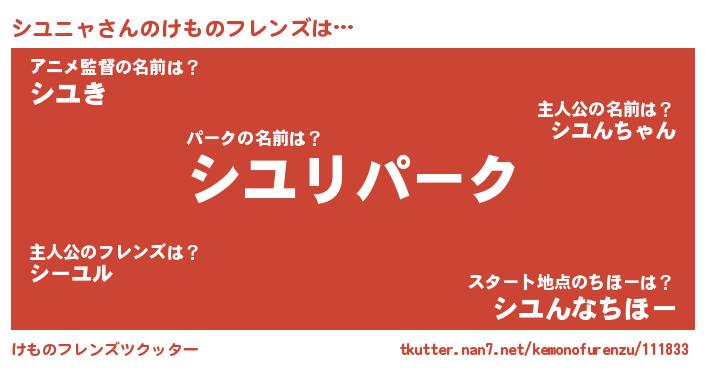 | 意味不明あだ名 | 『自称シユニャ』『たけのこ科シユニャ属』 |