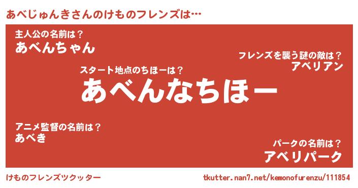 | 意味不明あだ名 | 『あべじゅんきフォーエバー』 |