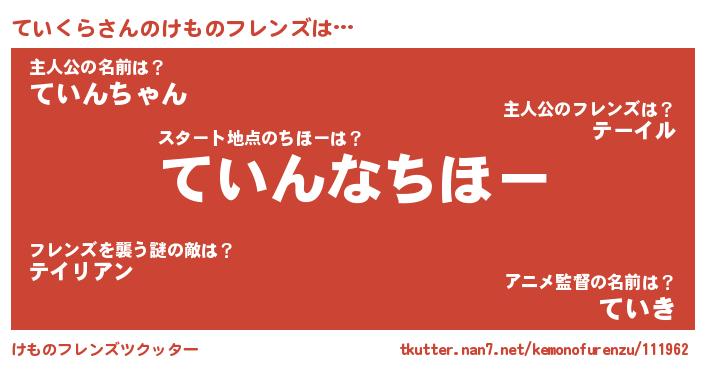 | 2回繰り返すあだ名 | 『てていい』『ていてい』『ぬめぬめ』 |