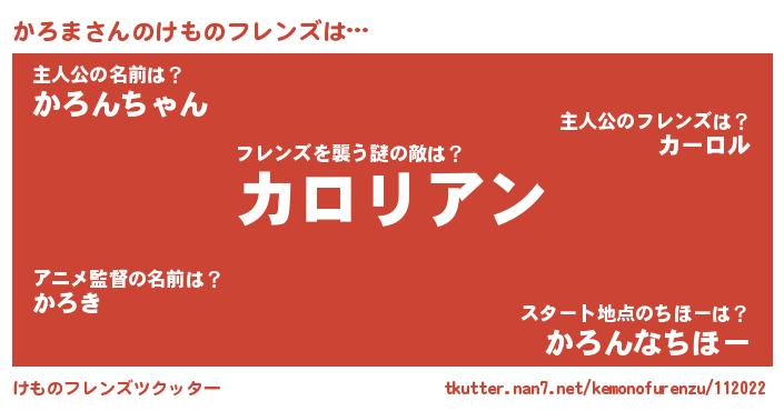| 自動車の名前っぽいあだ名 | 『カンR』『フェカーロ』『カロティマ』 |