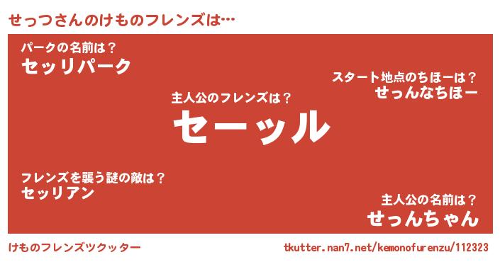 | 意味不明あだ名 | 『永久保存せっつ』『ヨモギ科せっつ属』 |