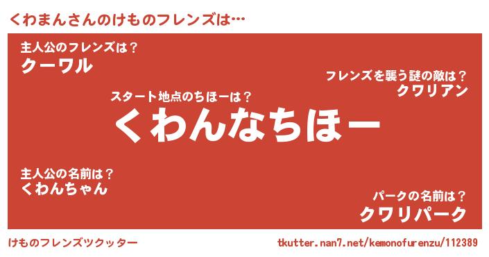 | 男性向けラノベタイトル風あだ名 | 『この素晴らしい世界にくわまんを!』 |