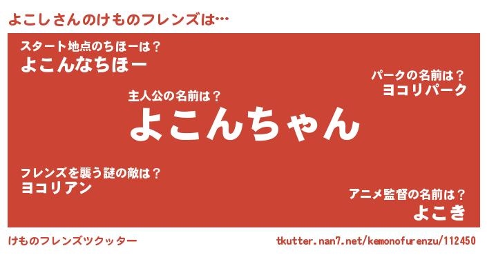 | 2回繰り返すあだ名 | 『よこよこ』『しょりしょり』 |