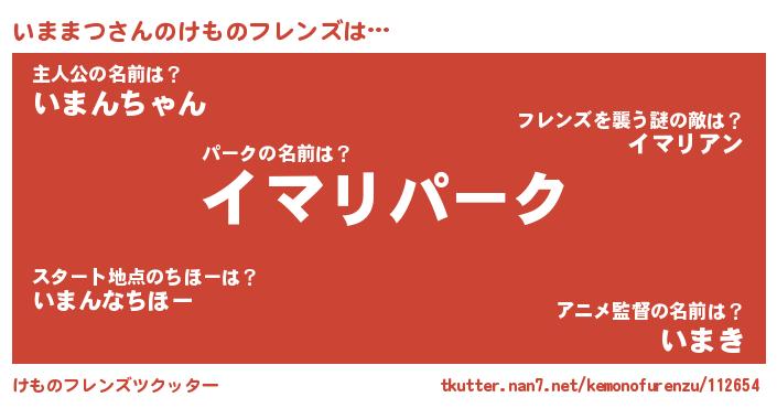 | 意味不明あだ名 | 『自称いままつ』『ペロリンいままつ』 |
