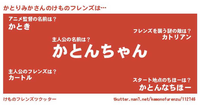 | 男性向けラノベタイトル風あだ名 | 『かとりみか~年齢イコール彼女いない歴の魔法使い~』 |