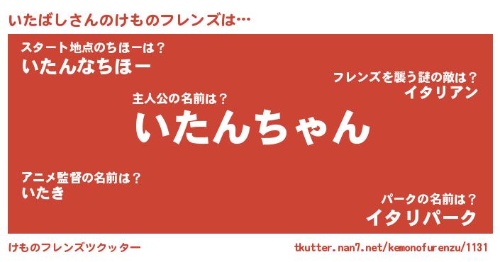 | 2回繰り返すあだ名 | 『わなわな』『いたいた』『いいたた』 |