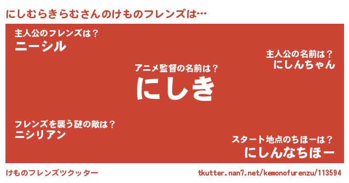 | ポケモン風あだ名 | 『ヒニシムラキラム』『ゼニニシ』 |