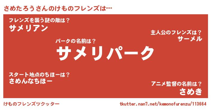 | 意味不明あだ名 | 『自称さめたろう』 |