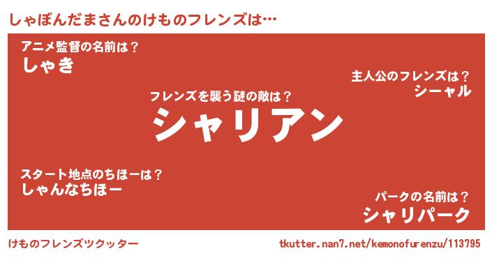 | 意味不明あだ名 | 『住所不定無職しゃぼんだま(41歳)』 |