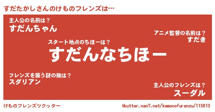 | 男性向けラノベタイトル風あだ名 | 『すだたかしに滅ぼされるだけの簡単なお仕事です』 |