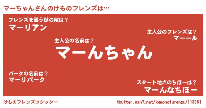 | 2回繰り返すあだ名 | 『マーマー』『べしべし』『ママーー』 |