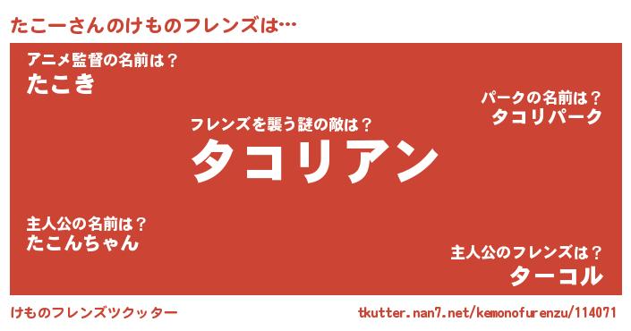 | ヒーロー風カッコイイあだ名 | 『友情の使者たこー』『幻影騎士タコ』 |
