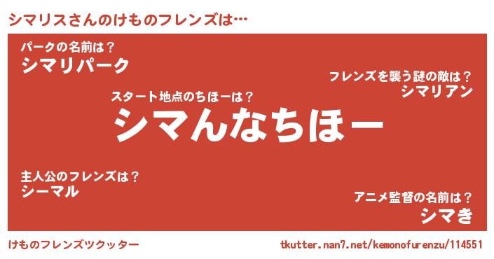 | 意味不明あだ名 | 『つくし科シマリス属』『自称シマリス』 |