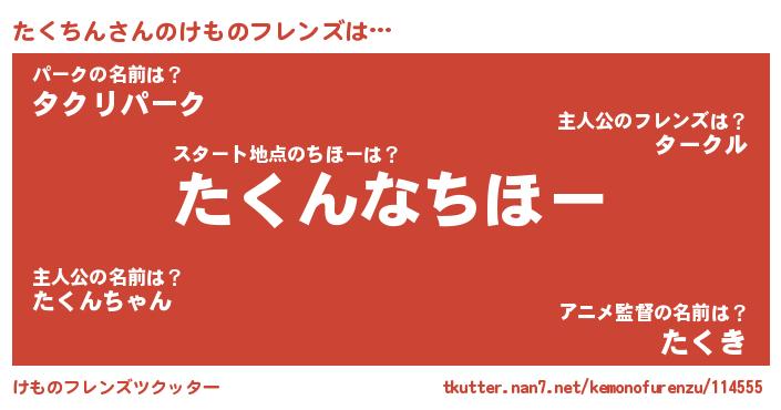 | 男性向けラノベタイトル風あだ名 | 『この素晴らしい世界にたくちんを!』 |