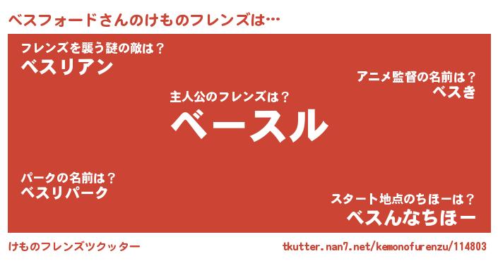 | 意味不明あだ名 | 『住所不定無職ベスフォード(84歳)』 |
