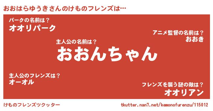| 2回繰り返すあだ名 | 『おおおお』『ちゃちゃ』『もーもー』 |