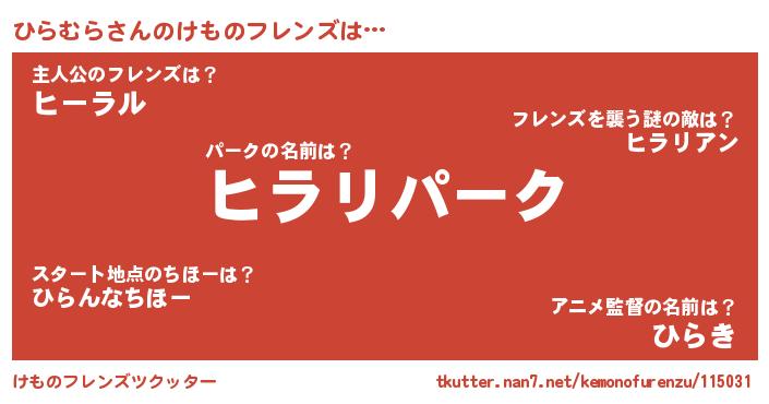 | 意味不明あだ名 | 『自称ひらむら』『永久保存ひらむら』 |