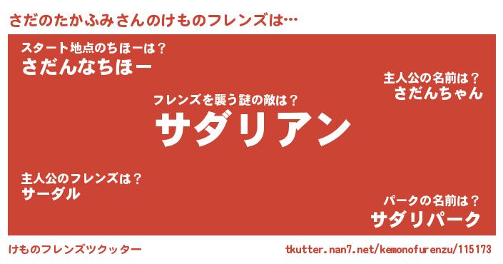 | 男性向けラノベタイトル風あだ名 | 『おまえをオタクにしてやるから、俺をさだのたかふみにしてくれ! 』 |