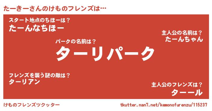 | 意味不明あだ名 | 『自称たーきー』『たーきーフォーエバー』 |