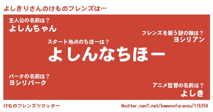 | 意味不明あだ名 | 『よしきりフォーエバー』 |