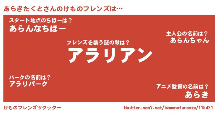 | ヘコむあだ名 | 『つくし』『あらを』『あらっふぃ~』 |