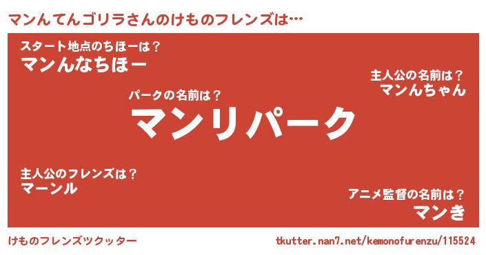 | 男性向けラノベタイトル風あだ名 | 『うちのマンんてんゴリラが世界を掌握している!』 |