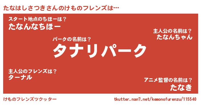| ポケモン風あだ名 | 『タナセウス』『タナハダネ』 |