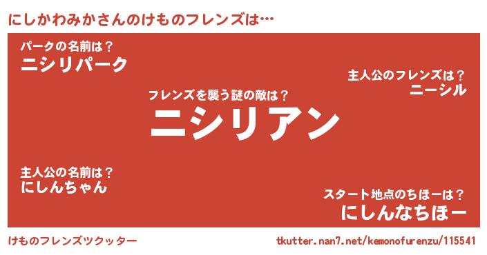| 男性向けラノベタイトル風あだ名 | 『この素晴らしい世界ににしかわみかを!』 |