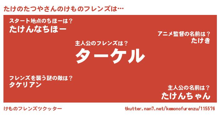 | 意味不明あだ名 | 『住所不定無職たけのたつや(62歳)』 |