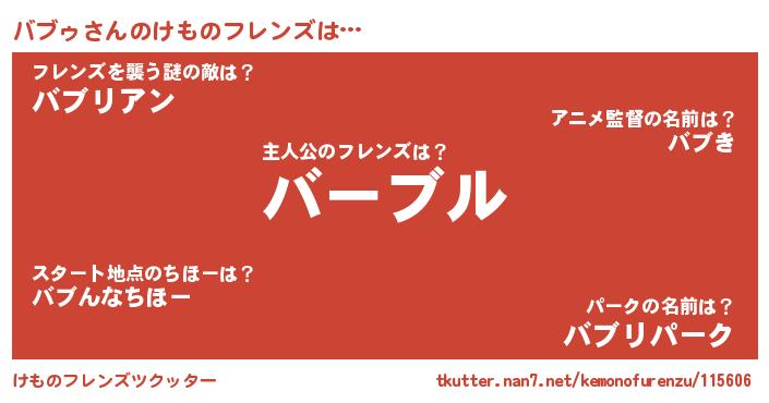 | ヒーロー風カッコイイあだ名 | 『ネオバブゥ』『友情の使者バブゥ』 |
