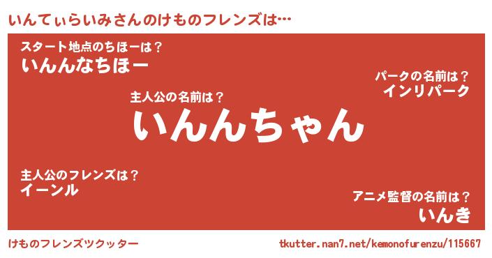 | 2回繰り返すあだ名 | 『いんいん』『いいんん』『おたおた』 |