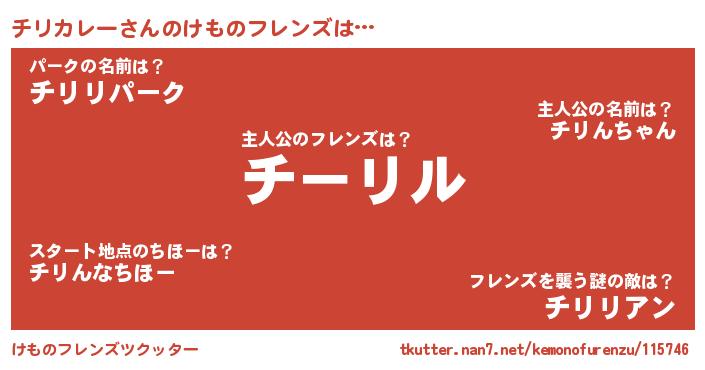 | ファンタジー風あだ名 | 『チリディッシュ』『ゼチリトゥ』 |
