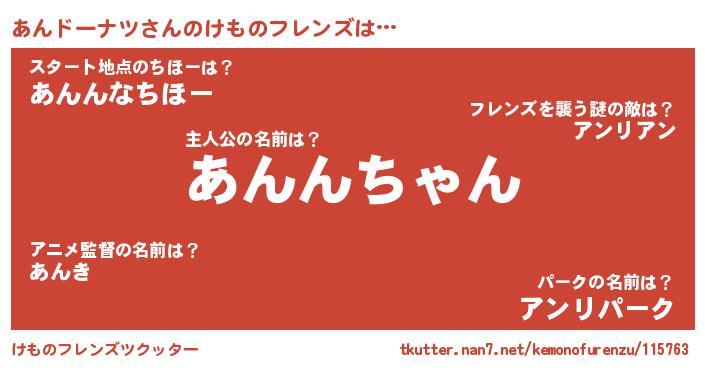 | ヒーロー風カッコイイあだ名 | 『スーパーアンドーナツ』『魔戒騎士アン』 |