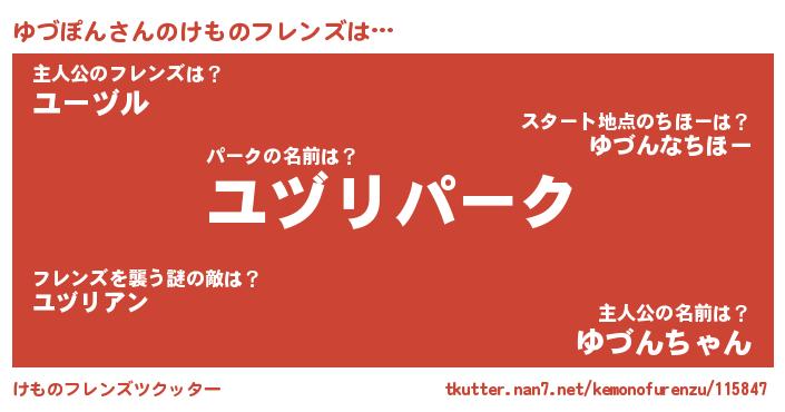 | ファンタジー風あだ名 | 『ゼユヅトゥ』『ユヅディッシュ』 |