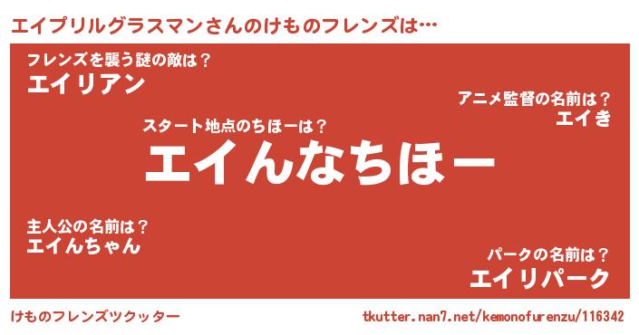| 男性向けラノベタイトル風あだ名 | 『この素晴らしい世界にエイプリルグラスマンを!』 |