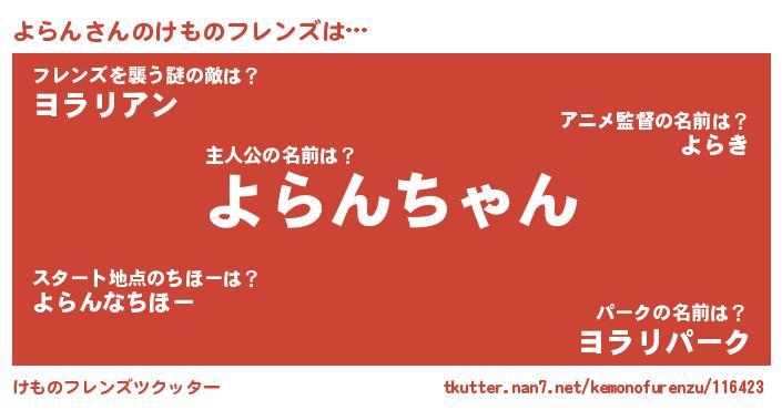 | 意味不明あだ名 | 『ペロリンよらん』『自称よらん』 |